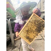 A nucleus colony (nuc) is a small, working honey bee colony with a laying queen, brood, workers, and stores.